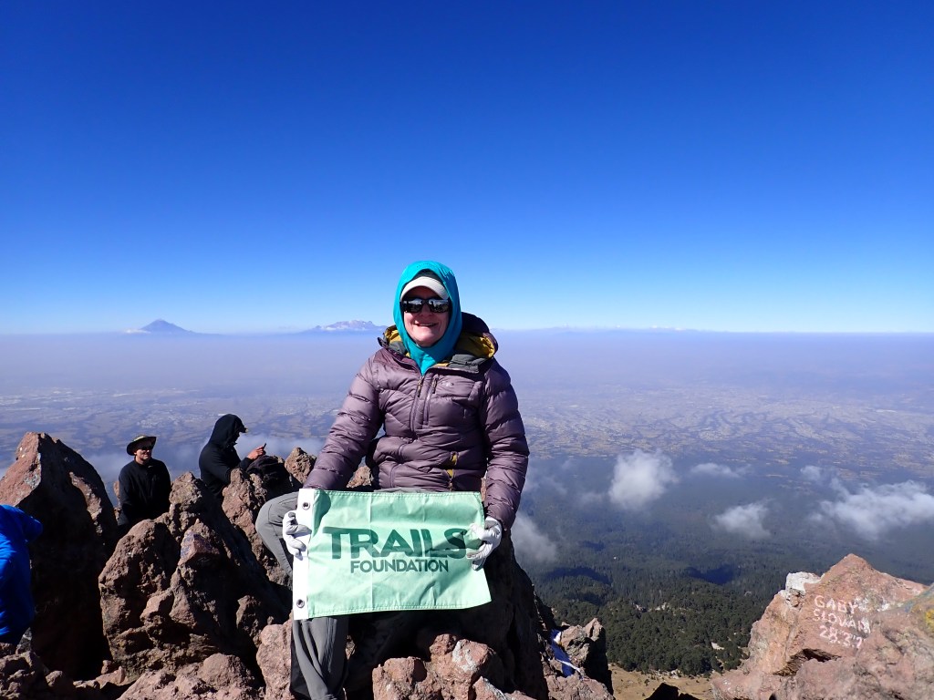 Summit shot with Popocatépetl on the skykine in the middle (uncharacteristically quiet with no smoke plumes visible) and Iztaccíhuatl aka Itza on the right – known as the “Sleeping Woman,” its four snow-capped peaks resemble a reclining female figure.